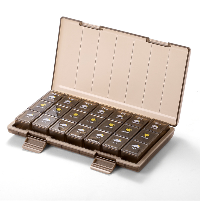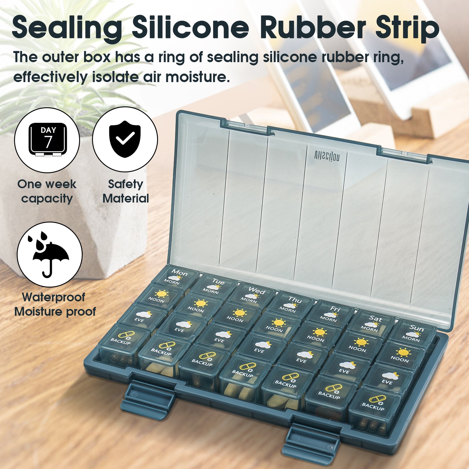21 Compartment and 28 Compartment Pill Organizer 4 Times a Day, Weekly Pill Case, 7 Day Medication Organizer Large Compartments Travel Supplements Storage Vitamin Container (Blue Brown and Green)