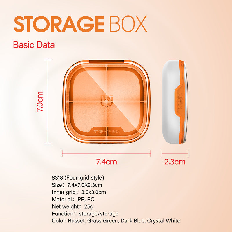 Glosen Pill Organizer Travel,Pill Box, Small Pill Case for Purse & Pocket, 4Compartments Pill Case, Daily Medicine Vitamin Box, Fish Oil Box, Supplement Box (Four-Compartment) (2 Color))