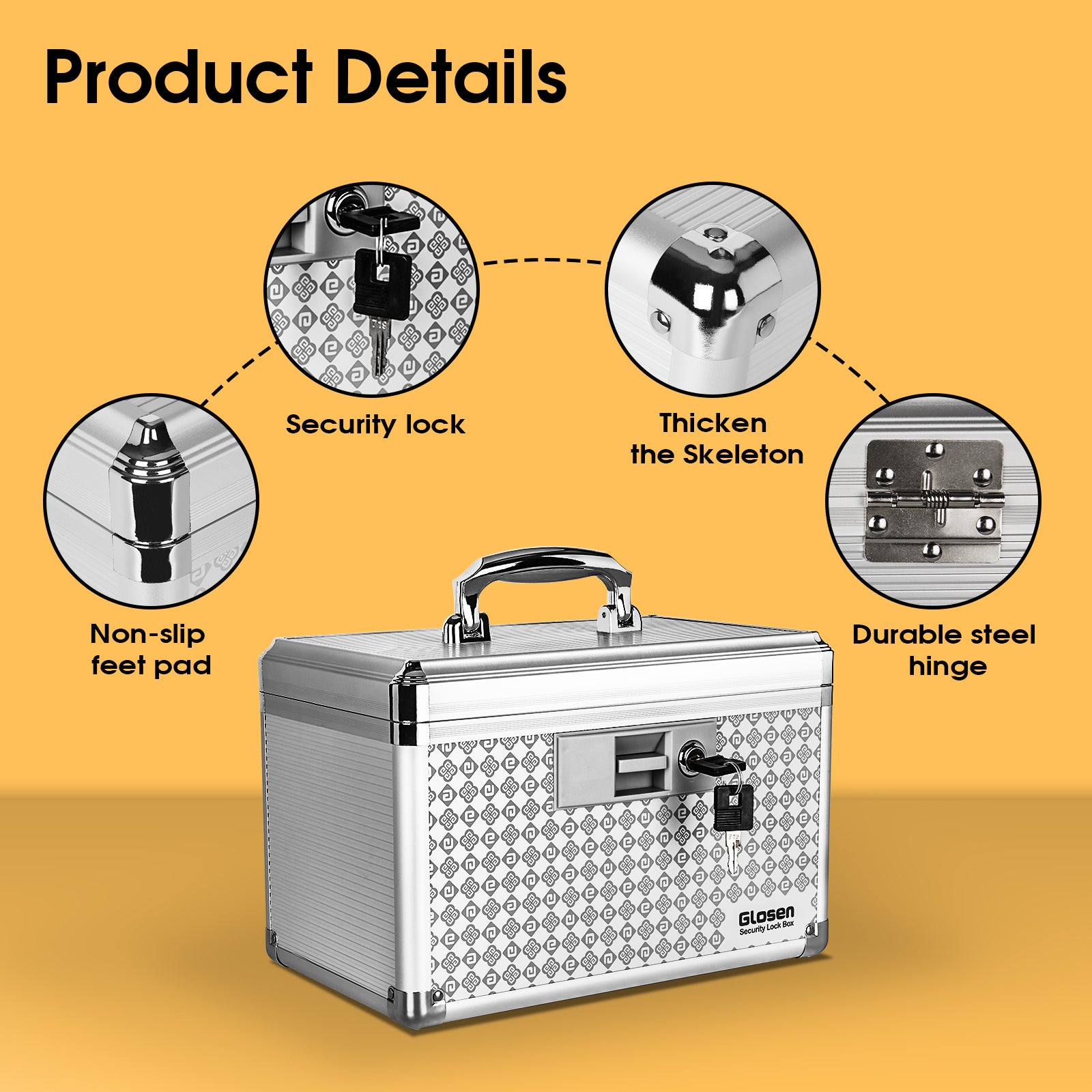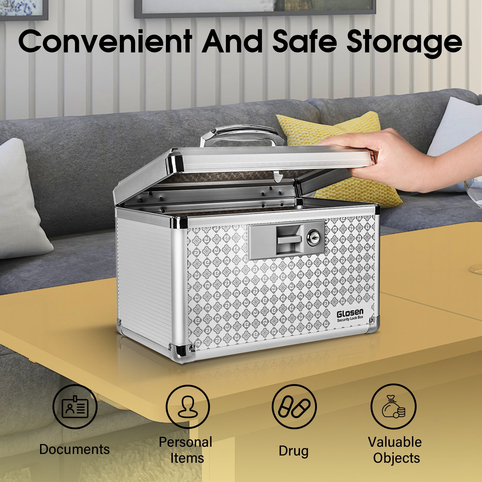 Lockable Medication Box, Locking Box for Secure Cash, Jewelry, ID Documents Lockable Dorm Storage Trunk with Key Lock - Briefcase, Lock Boxes for Personal Items