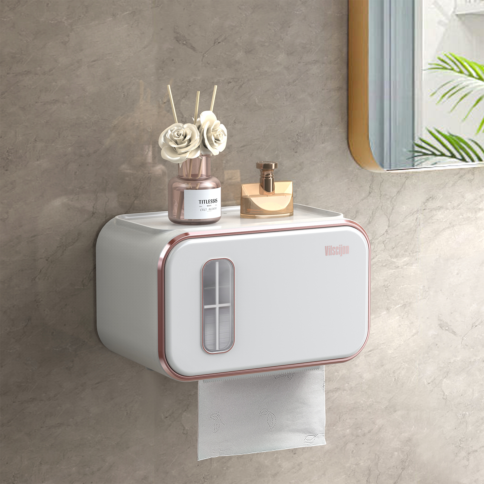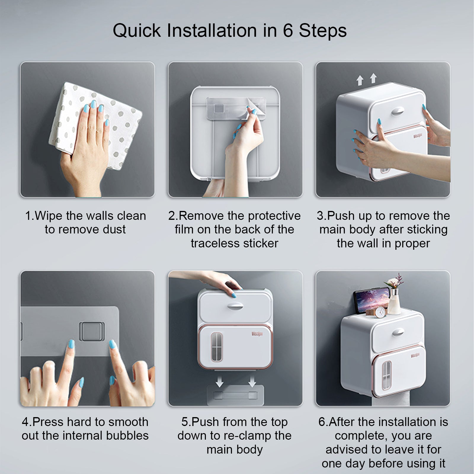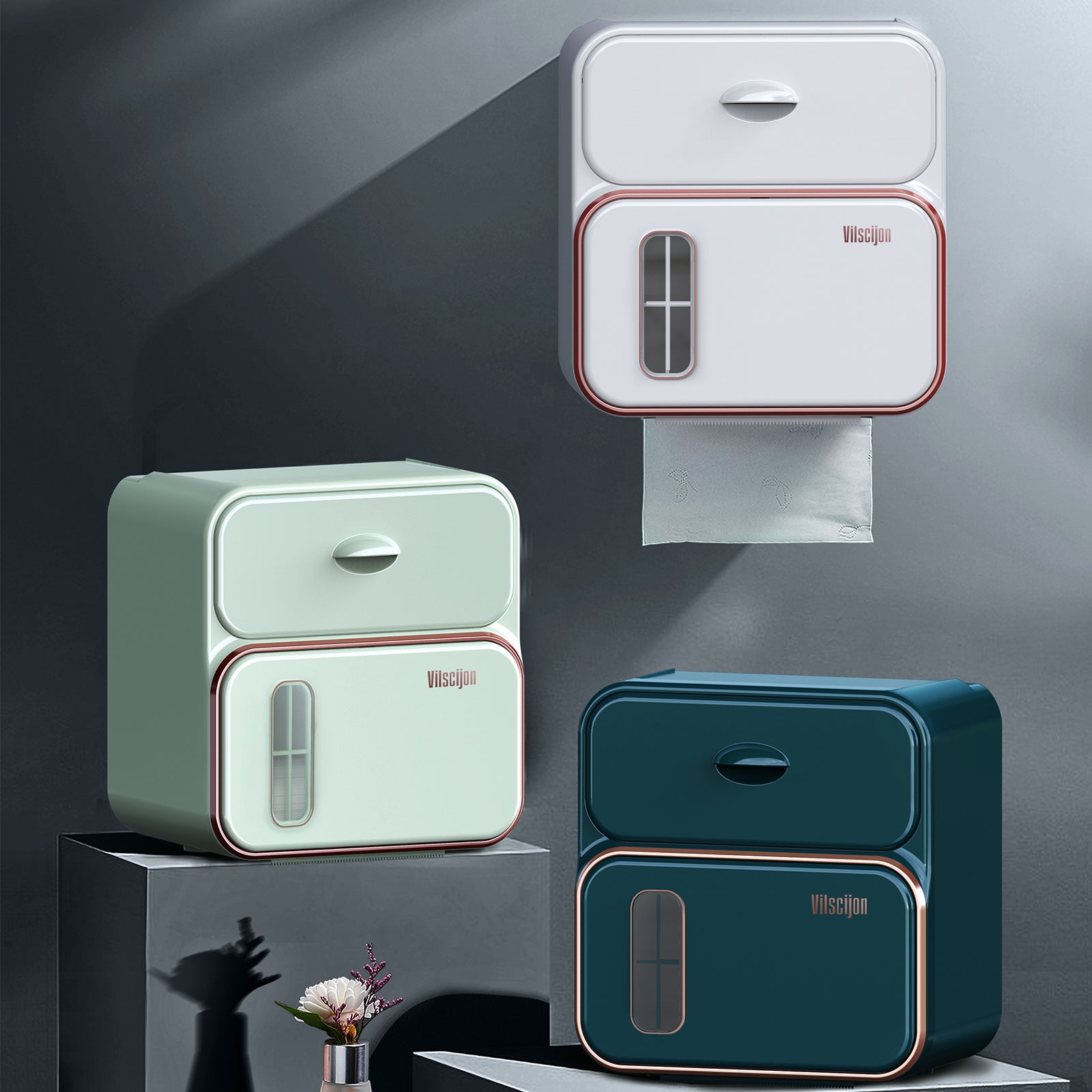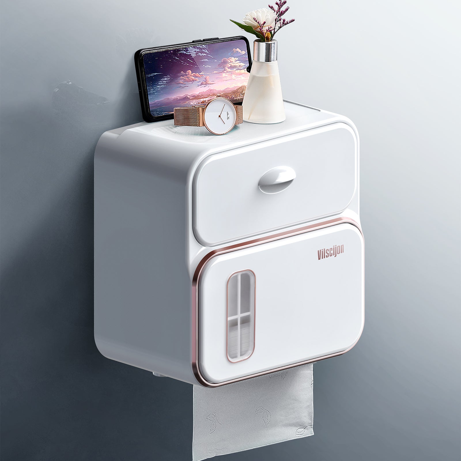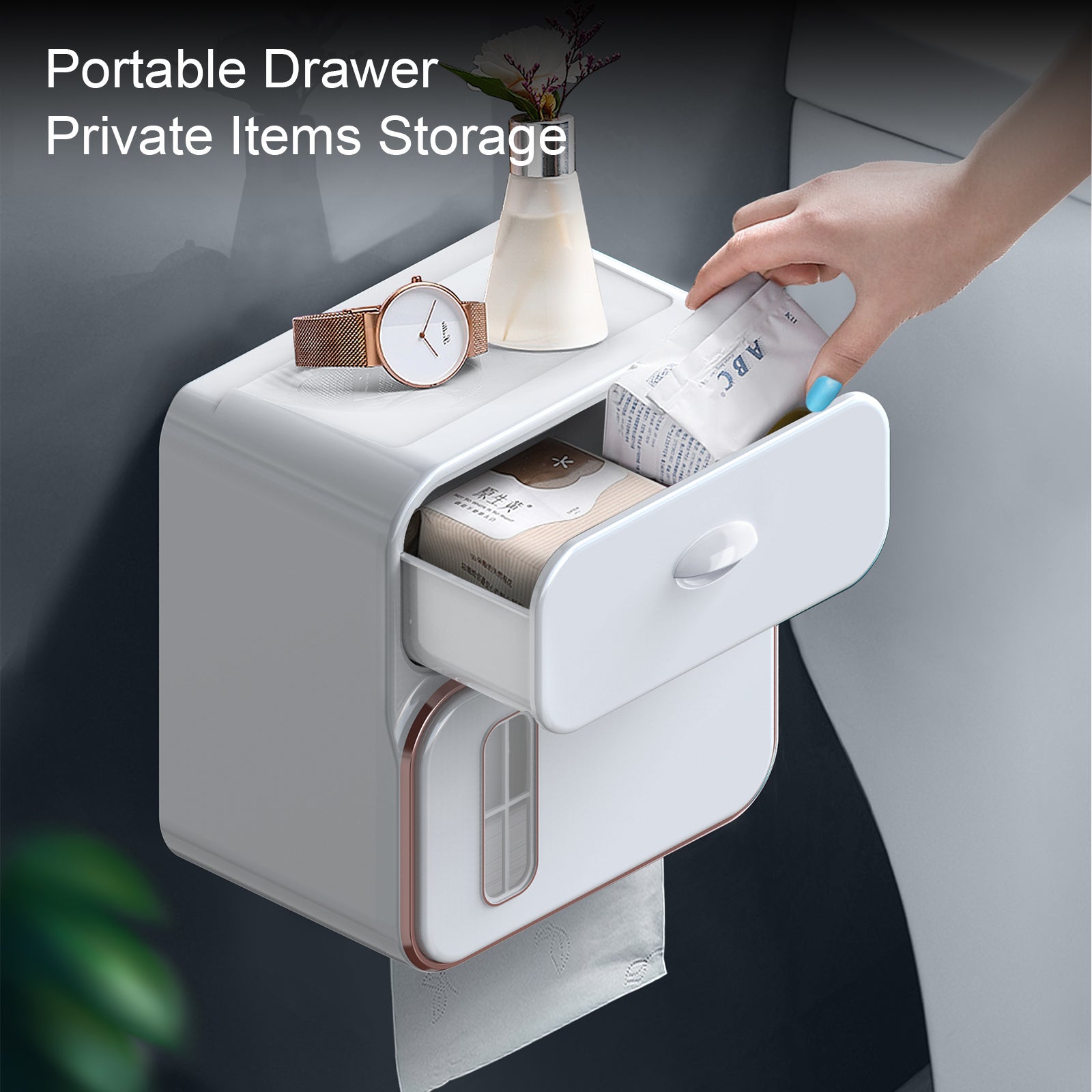 Household Essentials Bathroom Wall Tissue Storage Box with Waterproof Tape Drawer - Family Organizer Gift Decoration Shelf